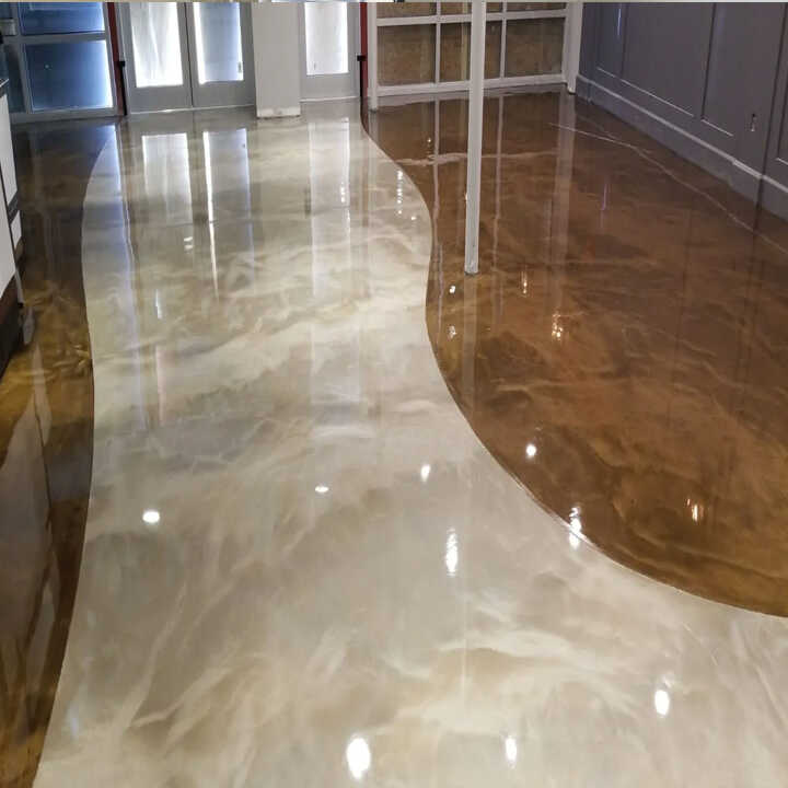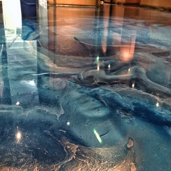 Bu zeminler, şeffaf bir epoksi veya poliaspartik taban kullanır ve yarı saydam zeminler, kullanılan metalik toz ne olursa olsun renklendirilir. Bu kaplamalar, çeşitli renkler ve görsel efektler içerebilen parlak ve derin görünümlü bir zemin oluşturur. Hatta bazıları, metalik görünümlü plazmadan oluşan kraterler, dalgalanmalar ve dönen nehirler yanılsaması veren güzel bir üç boyutlu görünüme sahiptir.